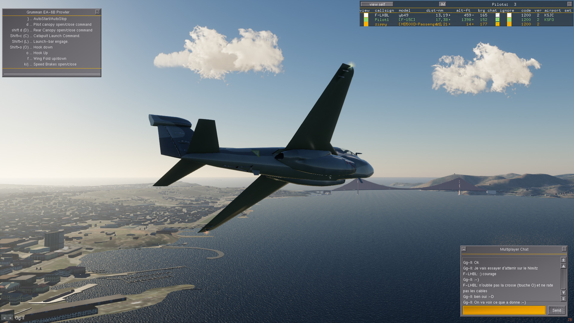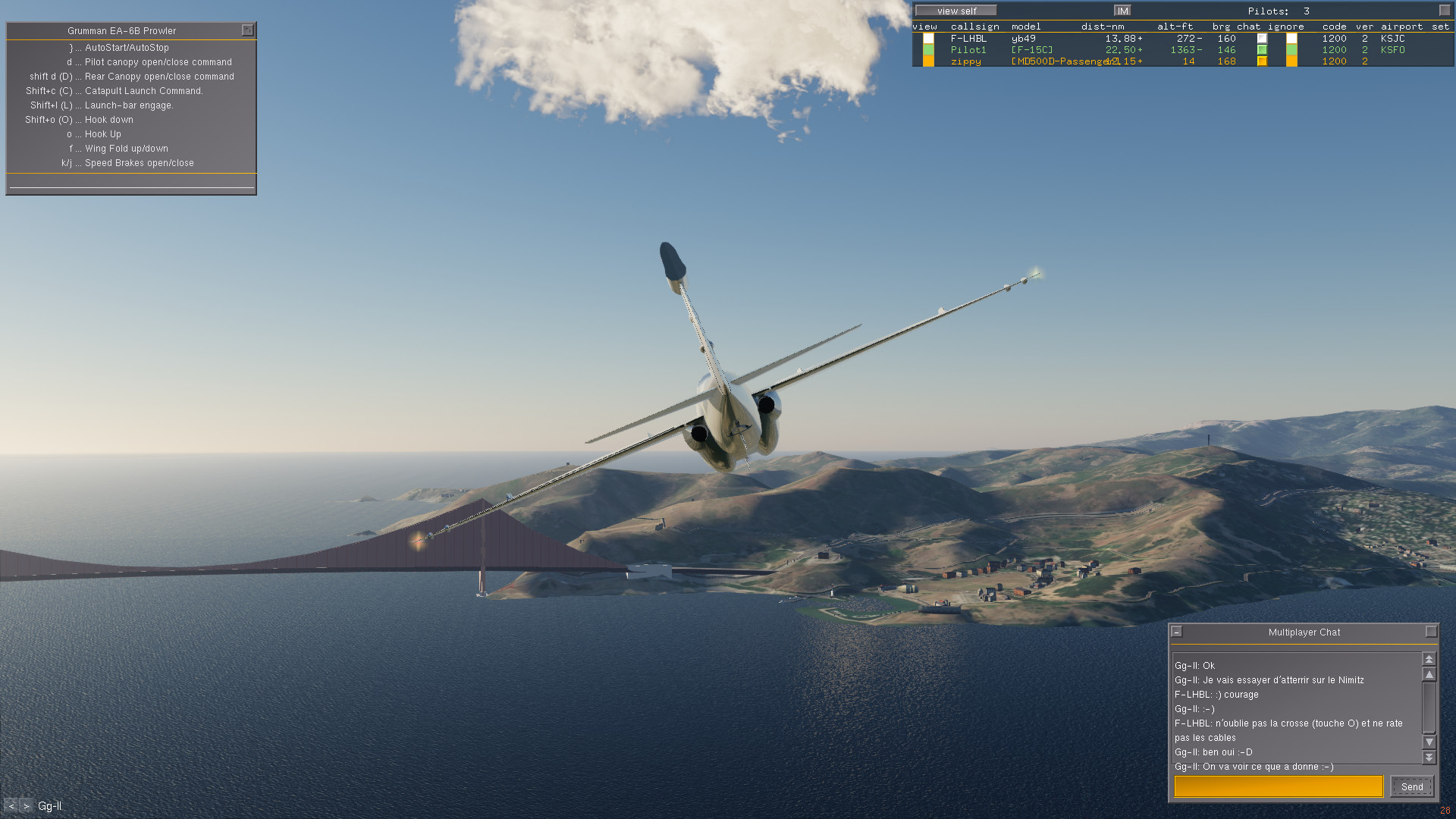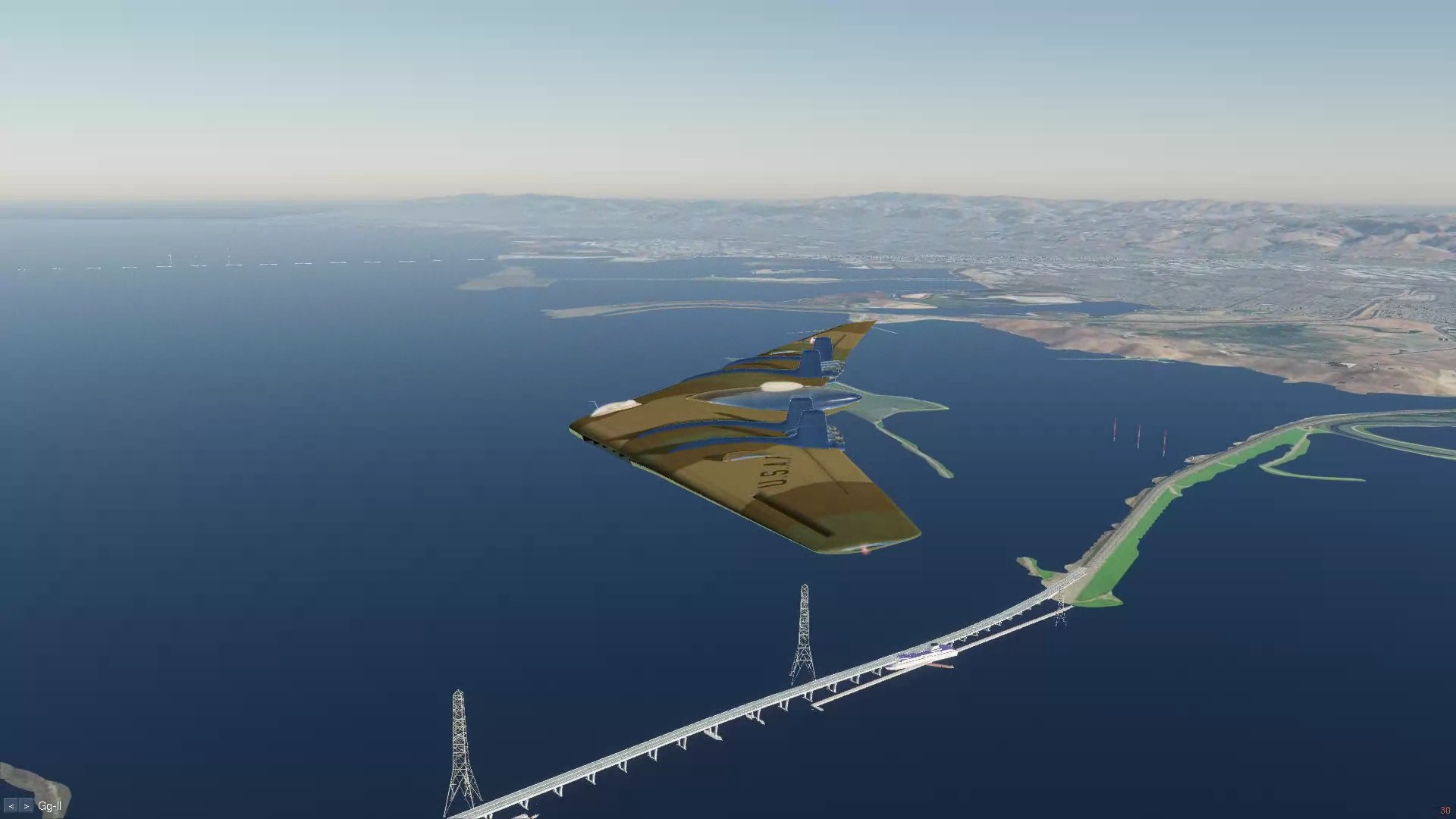 D'un seul coup j'ai eu envie de voler du coté de San Francisco avec une aile volante Northrop XB 35 (YASim) modélisé par Helijah, tout ça en mode HDR