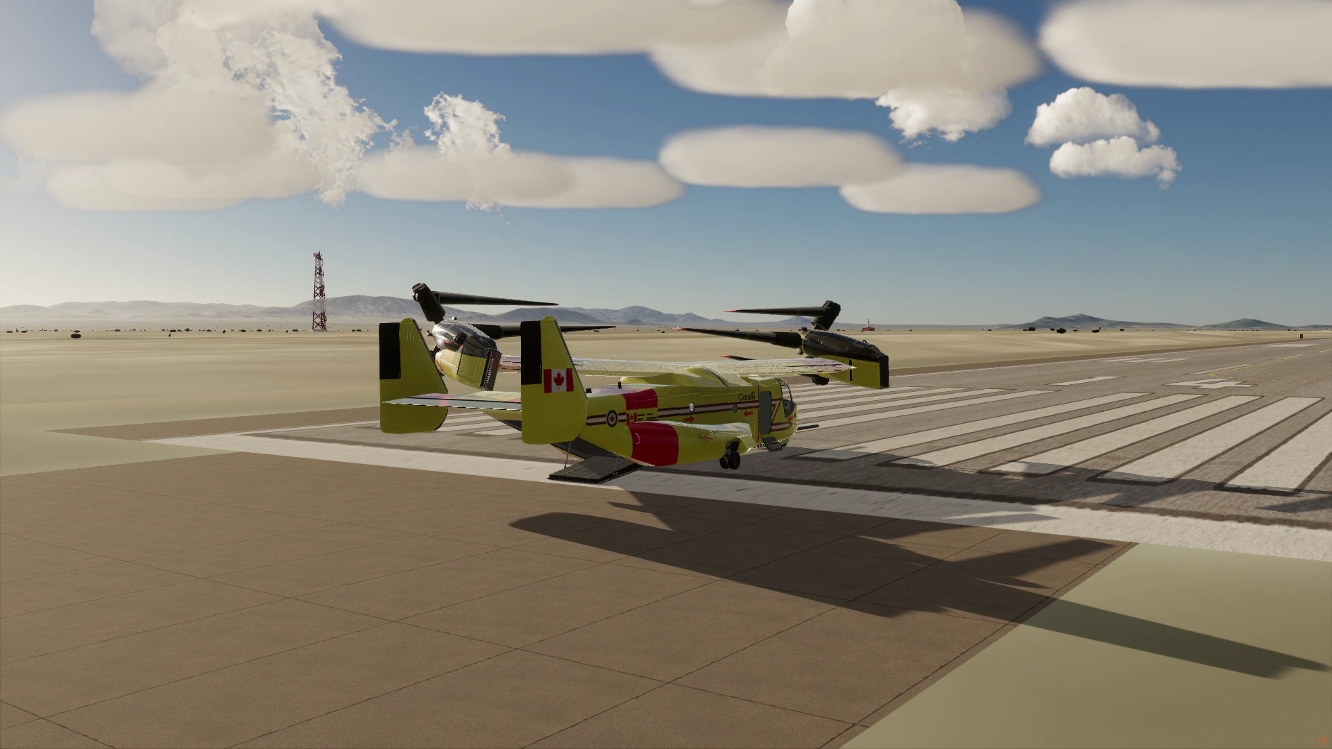 Du coup un petit vol avec le Bell Boeing V22 Osprey (YASim) modélisé par Helijah depuis la base 51 dans le Nevada en Amérique.