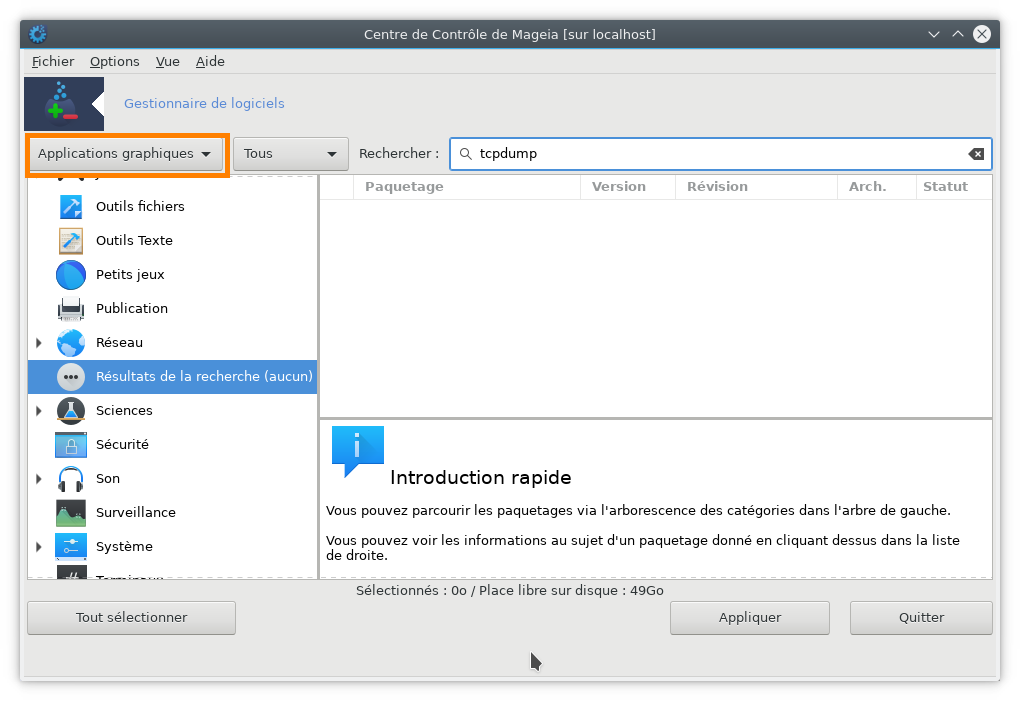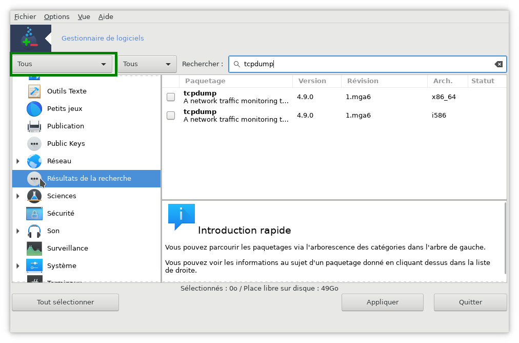 tcpdump est bien disponible sur mageia. Pense simplement à changer le filtre de l'outil d'installation des logiciels qui par défaut est fixé à "Applications graphiques", limitant de ce fait la recherche aux applications graphiques.